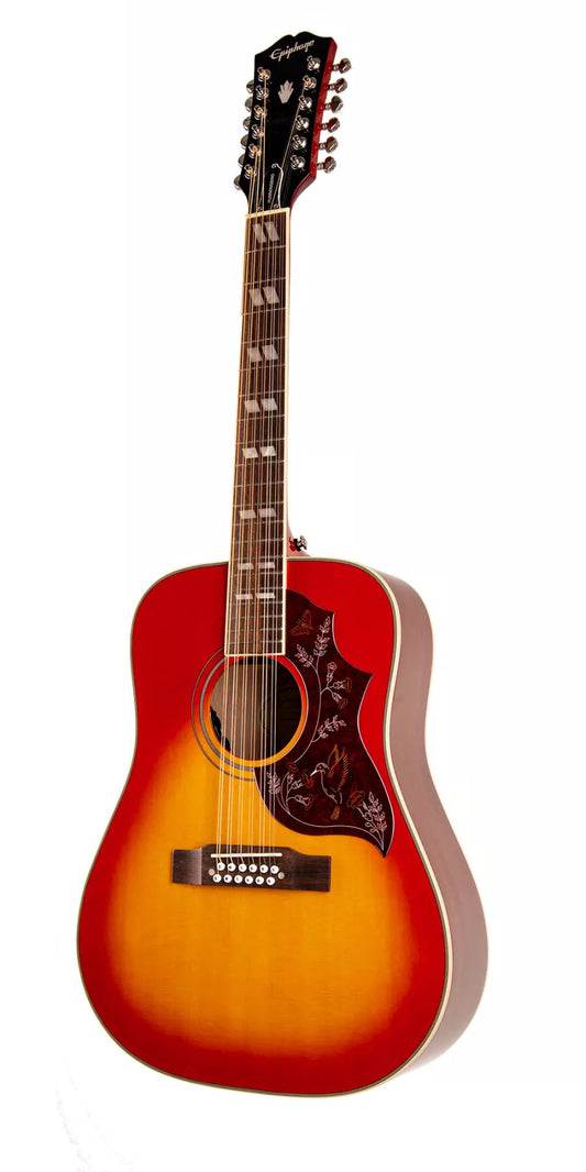 Epiphone Hummingbird Studio 12-String Electric/Acoustic Guitar in Faded Cherry