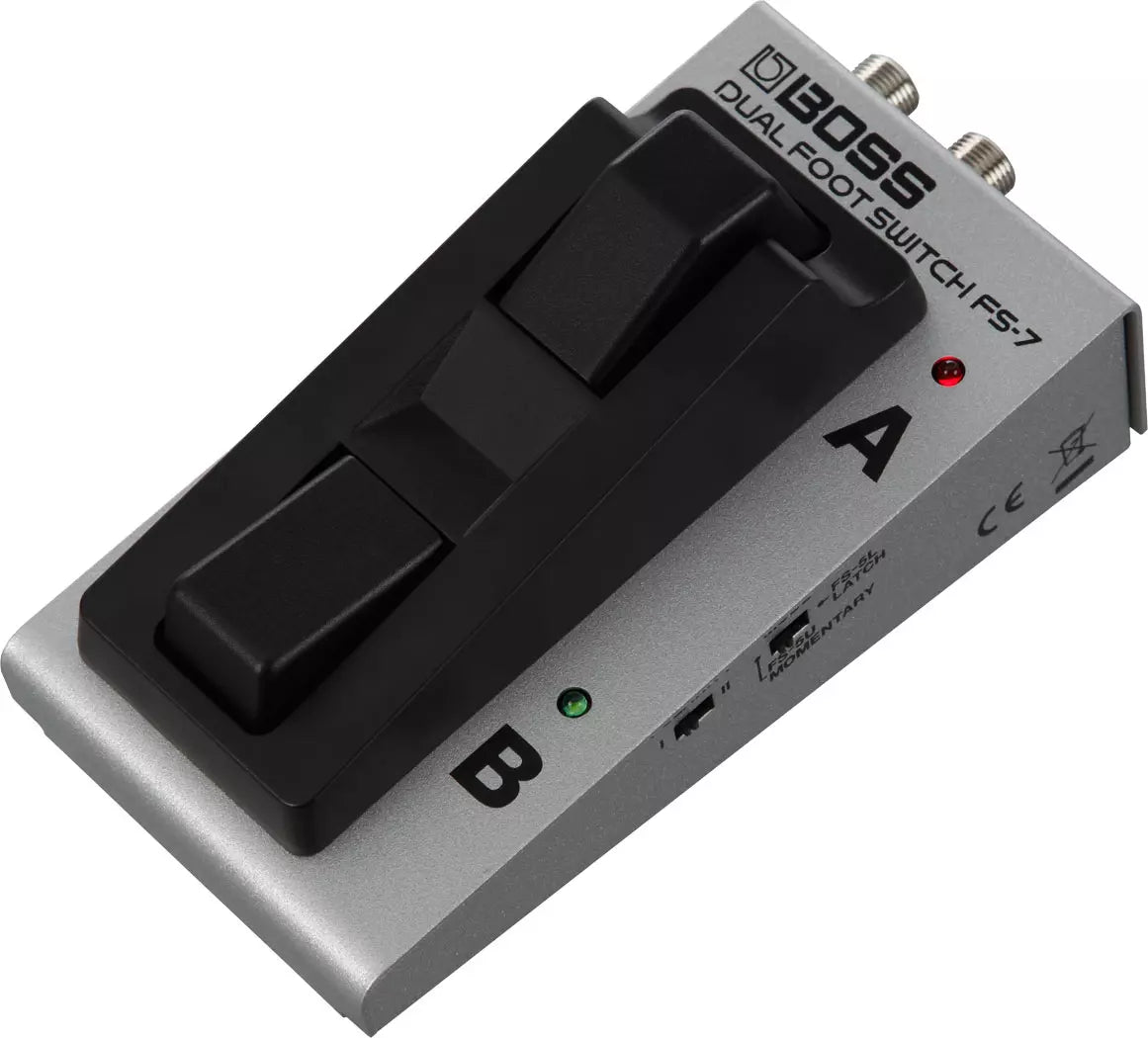 FS-7 is a compact dual footswitch for remote control of effect pedals or amp channel switching. Two footswitches are arranged in tandem, which saves space on effects pedal boards. Two selectable modes for latch or momentary allow for control of a wide range of equipment.
