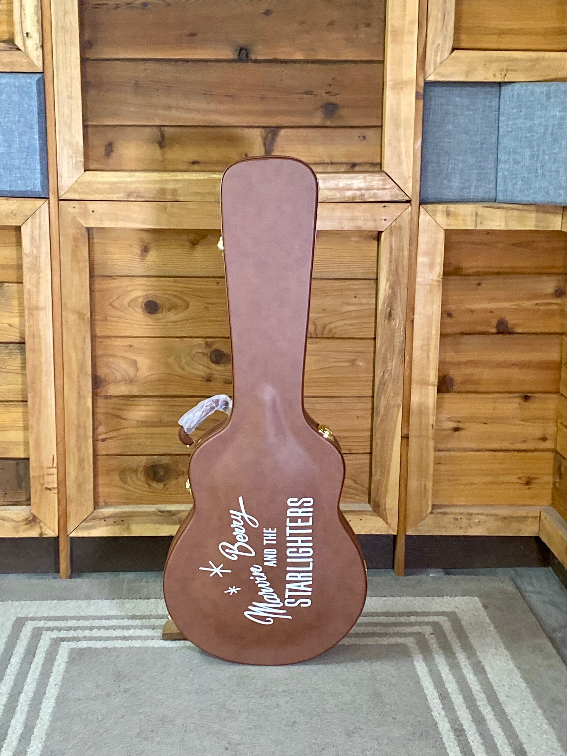 The Epiphone logo and Gibson Crown are inlaid in mother of pearl. On the back of the headstock, in a nod to the movie, you'll find a Hill Valley Music store decal. The Back to the Future ES-345 has gold hardware, including an Epiphone LockTone™ Tune-O-Matic™ bridge and a Bigsby® B70 vibrato tailpiece, and just like the guitar in the movie, the original Stop Bar studs are left in place. The Back to the Future ES-345 is powered by two of Epiphone's acclaimed Alnico Classic PRO™ pickups, each with individual volume and tone controls. A mono Varitone provides even more tonal versatility. It even comes packed in a vintage-style hardshell case with Marvin Berry and the Starlighters graphics.