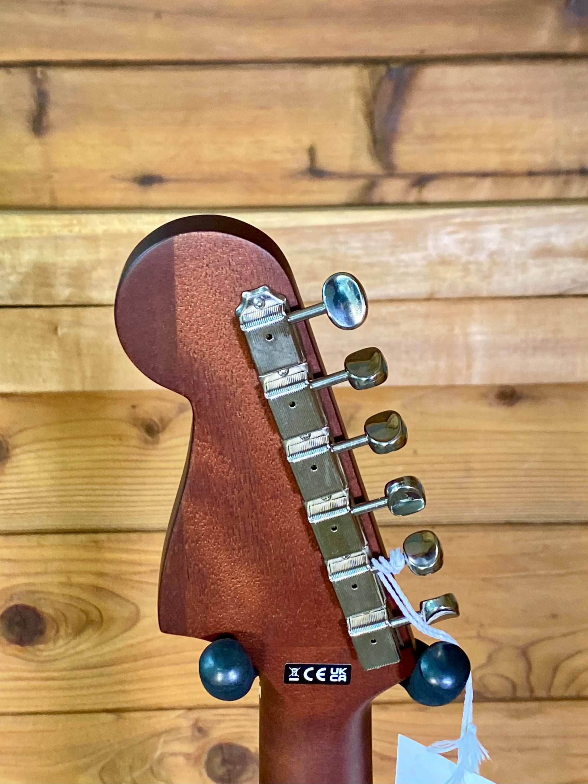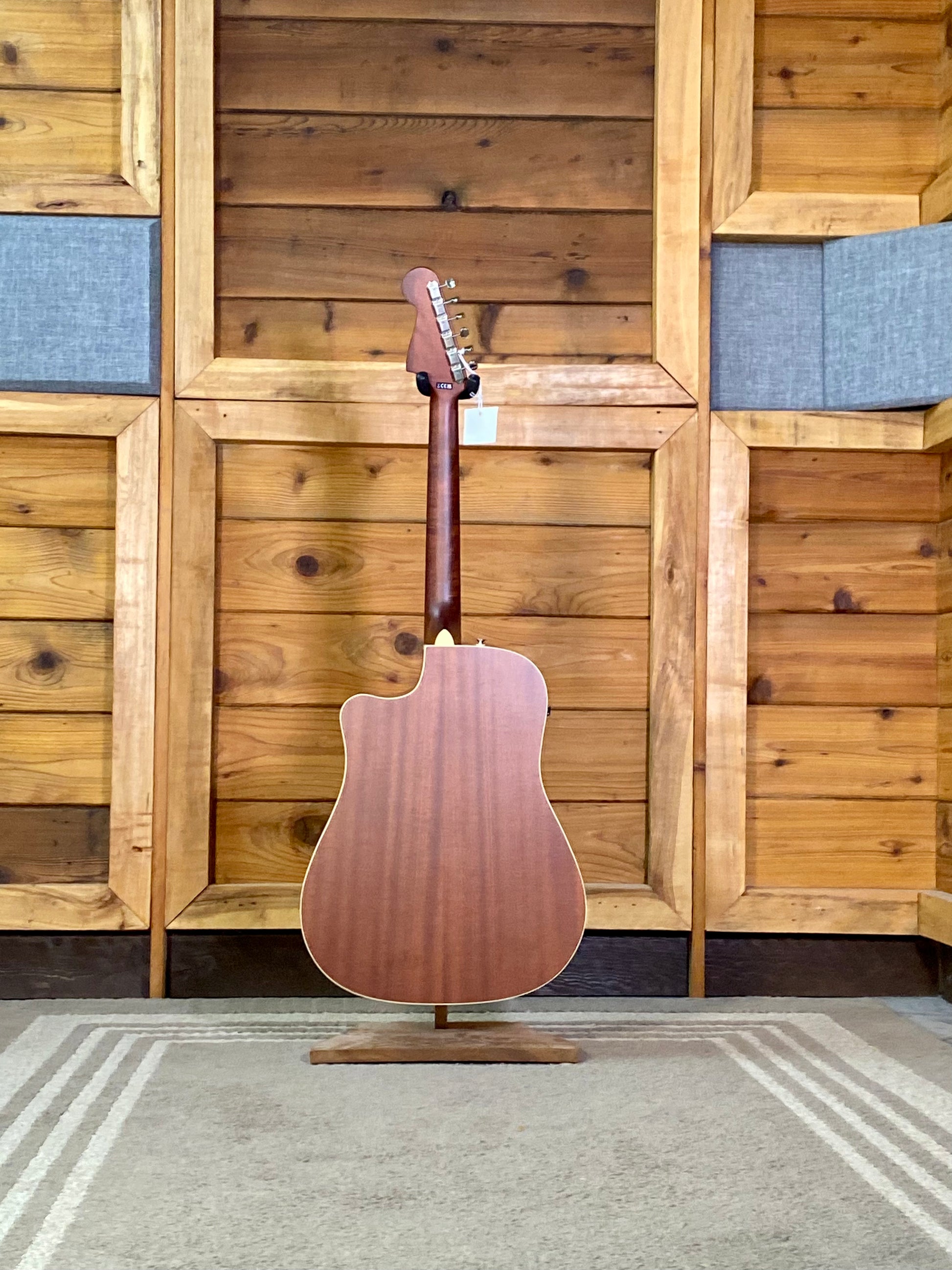 Crafted with an X-braced solid spruce top and sapele back and sides, the dreadnought body of the Redondo™ Player produces a deep, robust voice with exceptional projection and volume for a wide variety of musical settings. The nato neck is designed with an easy-to-play slim "C"-shaped profile, a 25.5" scale length, and a tilt-back 6-in-line headstock for a distinctive look born from Fender's electric guitar DNA. Other notable details include vintage-style tuning machines for smooth, accurate tuning, a GraphTech® NuBone® nut and saddle for detailed harmonic character. With elegantly integrated controls for a sleek, modern look, the onboard Fishman® Flex preamp system allows faithful reproduction of the guitar's natural sound when plugged into an amplifier or recording device.