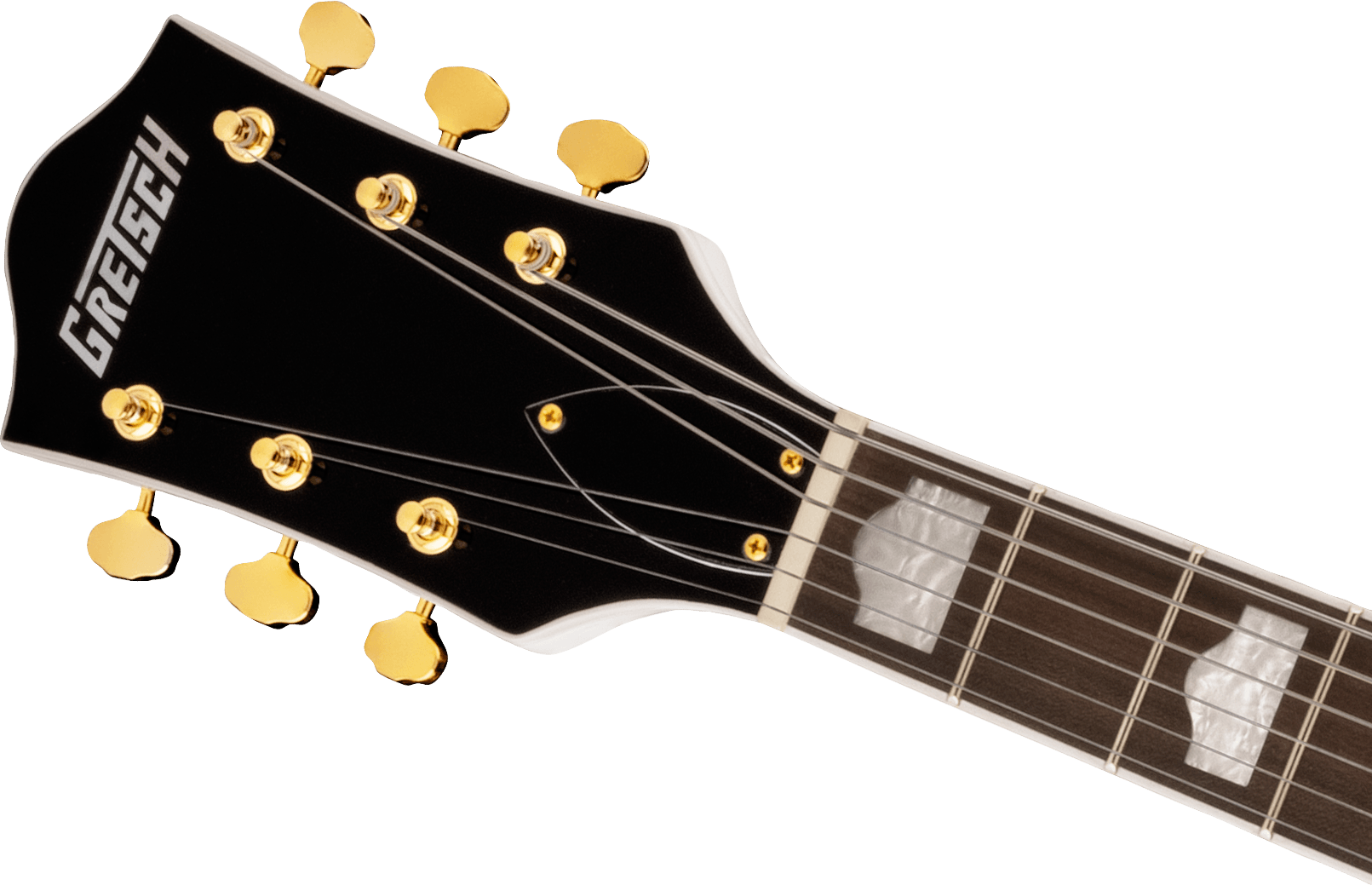 Alive and resonant, the G5422GLH also features a versatile upgraded control layout including master volume with treble bleed circuit, master tone, individual pickup volume controls and three-position pickup toggle switch, oversized bound F-holes, multi-ply body binding, smaller late-'50s G6120 bound headstock, vintage-style open-back tuning machines, Graph Tech® NuBone® nut, pearloid Hump Block inlays, secured Adjusto-Matic™ bridge and a Gretsch G-cutout tailpiece.