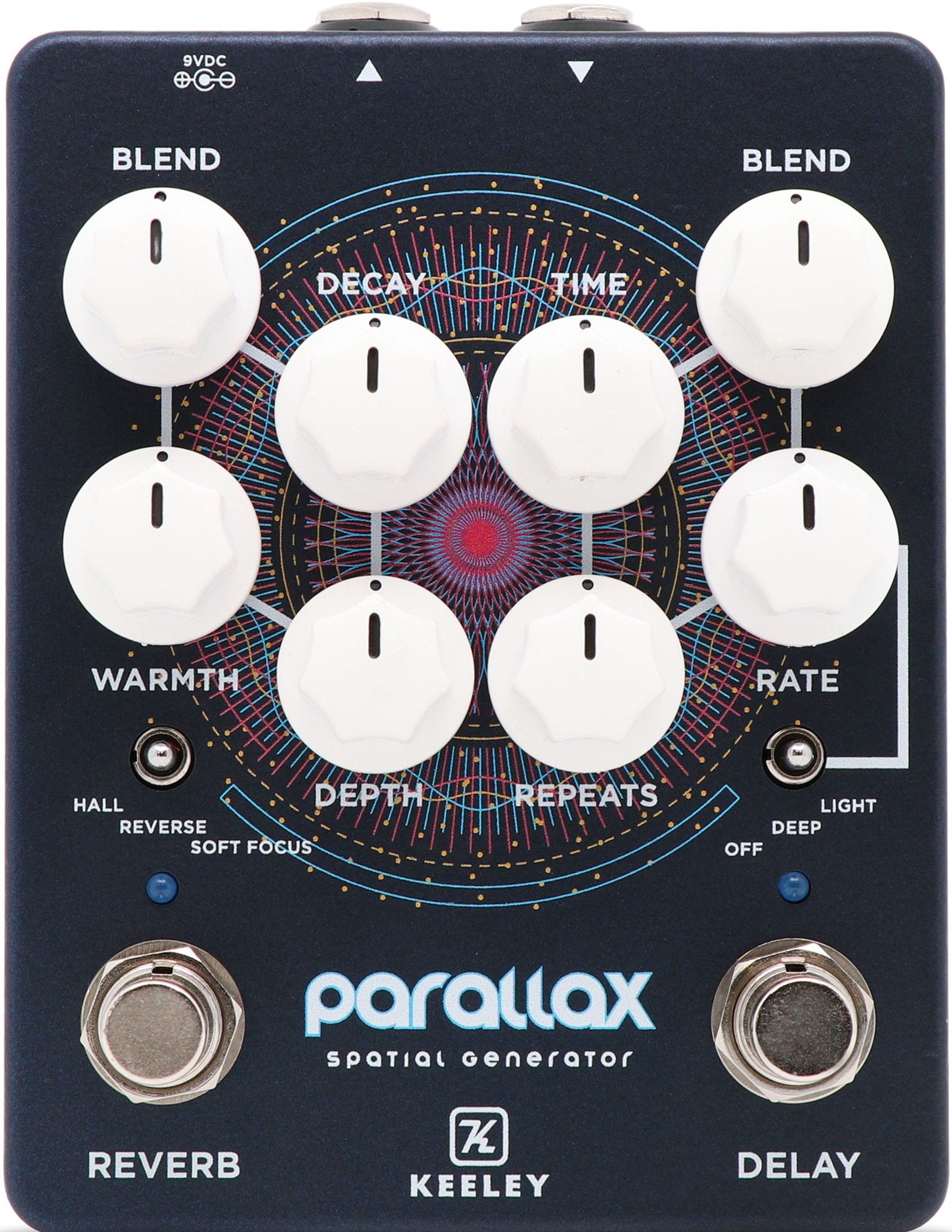 - On one side of the Parallax, analog-style modulated delays create a soft bed of warm repeats, while the other side builds Reverse setting-vibrato swirls (great for those who don’t have a vibrato arm on their guitar) to ambient modulations to form perfect pools of reverb reflection