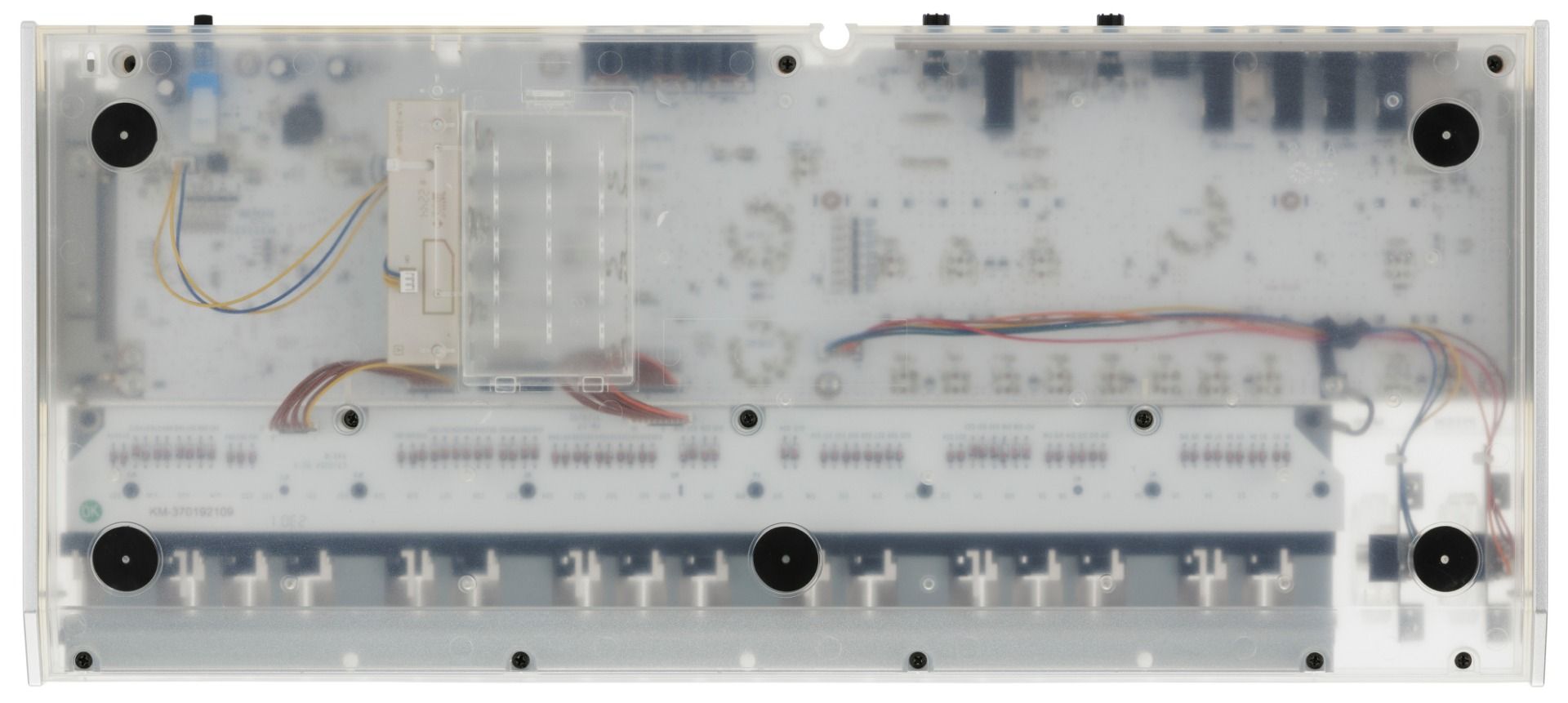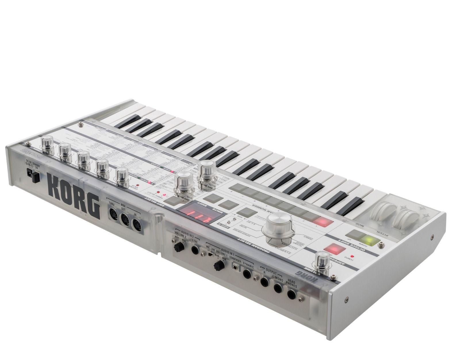 A shining homage to two decades of microKORG legacy The instruments that musicians recognize as “classics” are those that are loved and always in use, regardless of times and trends. The word “classic” symbolizes musical instruments that are revolutionary in their field. There may be imitations of a classic, but the distinct character of the original shines more brilliantly and is only enhanced by time. Two decades ago, the portable, battery powered microKORG was born with a radical new micro-keybed, a powerful Vocoder and ready-to-use sounds ideal for contemporary genres delivering countless hit performances, and instantly revolutionizing the way musicians played and! This compact sound monster introduced synthesis to a vast number of non keyboard playing musicians and created a way of making music we now take for granted: a small keyboard resting unassumingly atop a larger one onstage, made for use by hobbyists and pros alike and finding itself front and center of studios worldwide from the smallest bedroom to the largest pro recording facility. To celebrate the 20th anniversary of its release, the special edition microKORG Crystal offers a unique and stunningly stylish take on this beloved synth - now a classic in its own right. The microKORG was originally released in 2002 and has remained strong for two decades. Countless tracks and artists have made use of the amazing possibilities of the microKORG magic, so that it continues to be one of the most popular choices for musicians on stage and in the studio. microKORG Crystal is the ultimate reincarnation of this iconic synth - don’t miss it! “Skeleton” type semi-translucent chassis, with matching knobs and controls Previously unchanged, the microKORG Crystal features a new take on the structure of the microKORG, with a semi-translucent chassis that lets you see the electronics and internals.