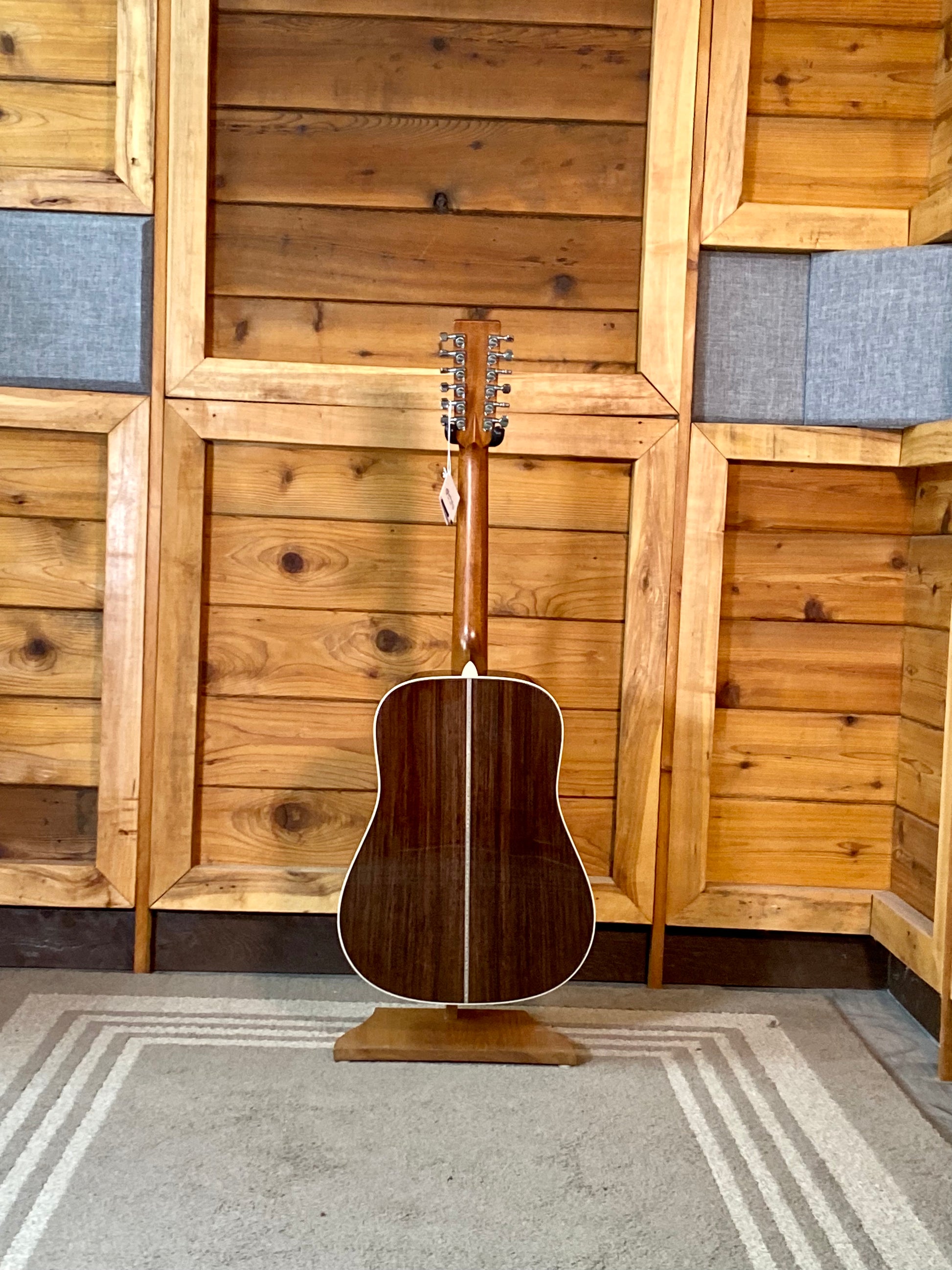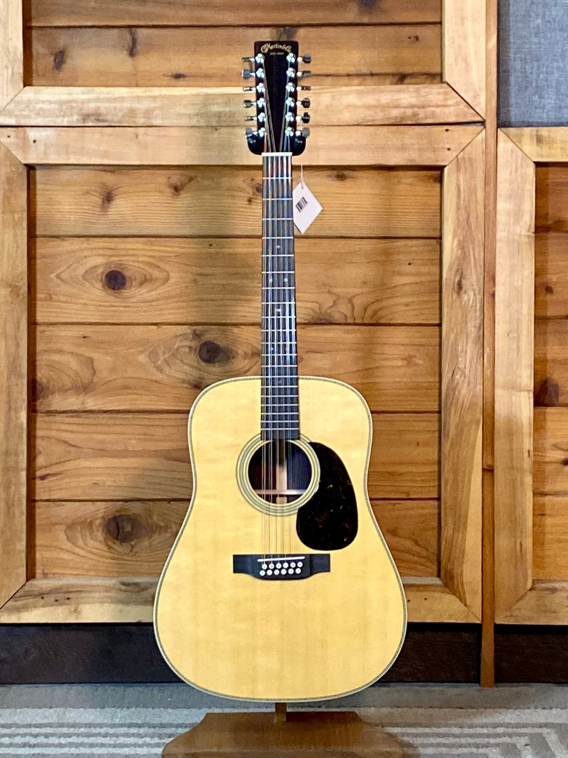 The Martin HD12-28 is a trusted choice for players seeking the lush, layered sounds that only a 12-string guitar can deliver. Beloved by generations of players for its ability to add depth and vibrant tonal layers, its Dreadnought body size produces a bold, projective tone with strong bass, clear trebles, and rich overtones, perfectly complemented by the chime and texture of the extra octave strings. Handcrafted with a solid spruce top and solid East Indian rosewood back and sides, the HD12-28 offers a resonant voice that’s balanced for all playing styles, whether you’re fingerpicking or strumming. The satin neck, featuring a Golden Era (GE) Modified Low Oval profile, high-performance taper, and shorter 24.9" scale length, ensures smooth, comfortable playability. Complete with antique white binding, bold herringbone inlay on top, an ebony fingerboard adorned with abalone diamond and square inlays, and chrome enclosed gear tuners, the HD12-28 is a guitar you can trust to unleash the artist within.