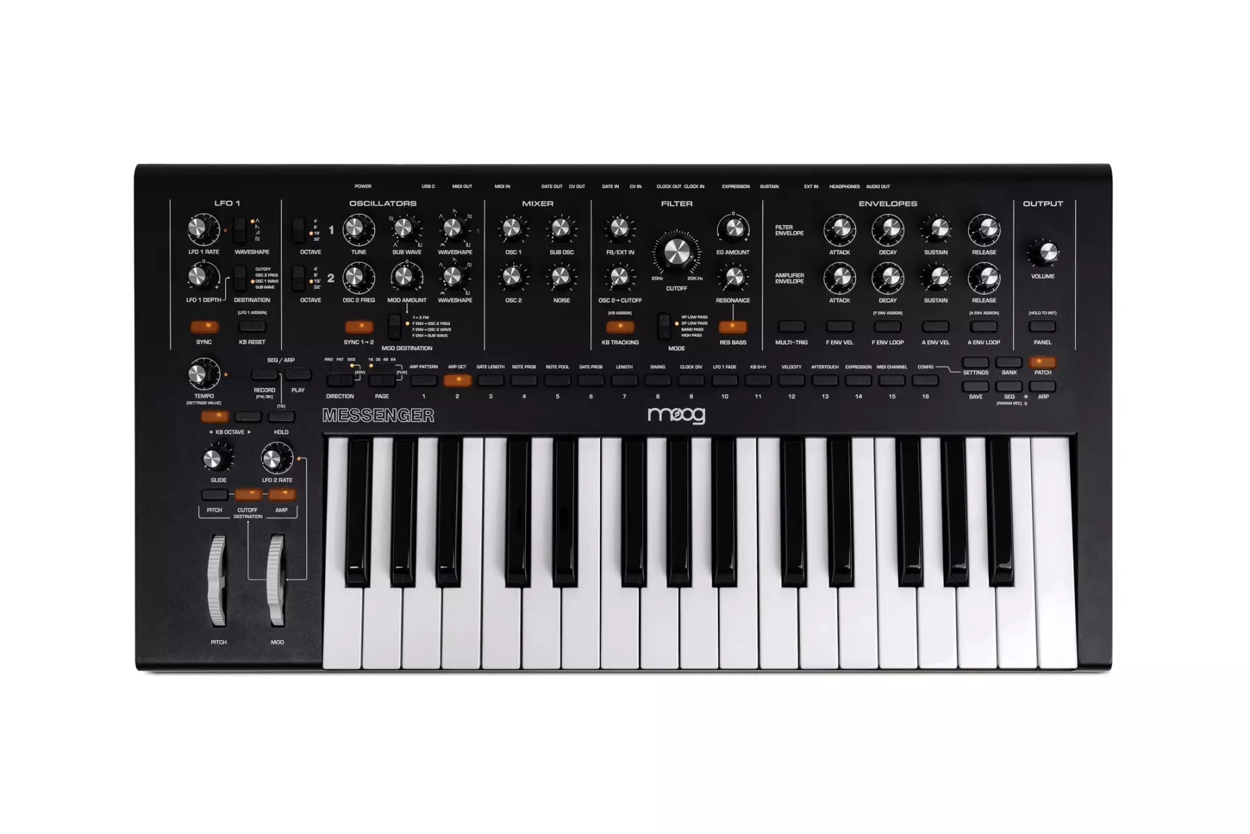 Messenger is packed full of innovative twists on beloved analog circuitry, blending the iconic, raw Moog sound with flexible, modern features designed for use on stage or in the studio.