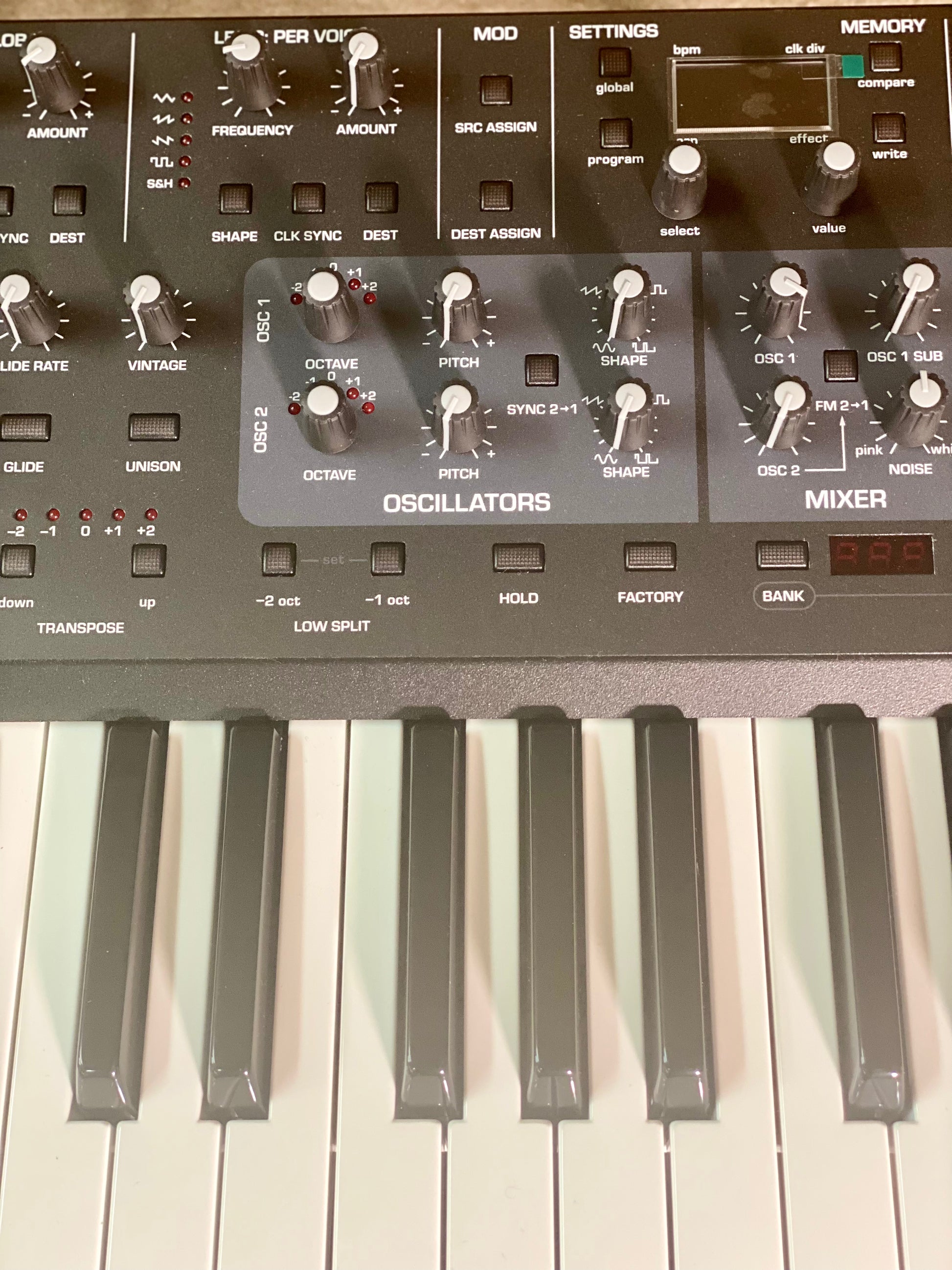 Compact and portable five-voice VCO/VCF-based poly synth designed with both synth newcomers and space-conscious pros in mind