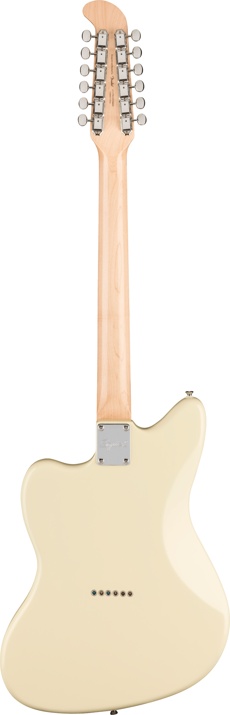 With its iconic offset body shape and rich harmonic character, the Squier® Jazzmaster® XII encourages the most adventurous players to chart a new course of guitar exploration. Featuring dual Fender-Designed alnico single-coil Jazzmaster pickups with 3-way switching and a vintage-inspired "hockey stick" headstock design, this 12-string model doubles down on chime-y tones and timeless style. Other player-friendly details include a graphite-reinforced "C"-shape neck for optimal stability and easy playability, a hybrid string-through-body/top-load bridge for reliable intonation, vintage-style tuning machines for smooth tuning action, and a gloss neck finish for a slick yet confident feel.