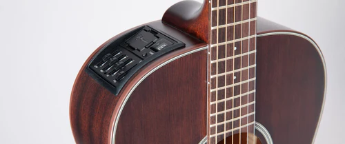 Takamine’s New Yorker-shape guitars are comfortable, sound great, and are one of the least challenging when it comes to managing performance dynamics. Smaller body guitars get good volume with minimal effort. This lovely instrument gets its tone from a solid spruce top and sapele back and sides. The overall tone is midrange-friendly, packed with great fundamental notes and less overtones when compared to larger bodied guitars. The GY21E SM is finished in our popular Satin Molasses finish, giving it a warm and rootsy vibe. Taking this guitar to the stage is easily accomplished with its versatile TP-3G electronics.