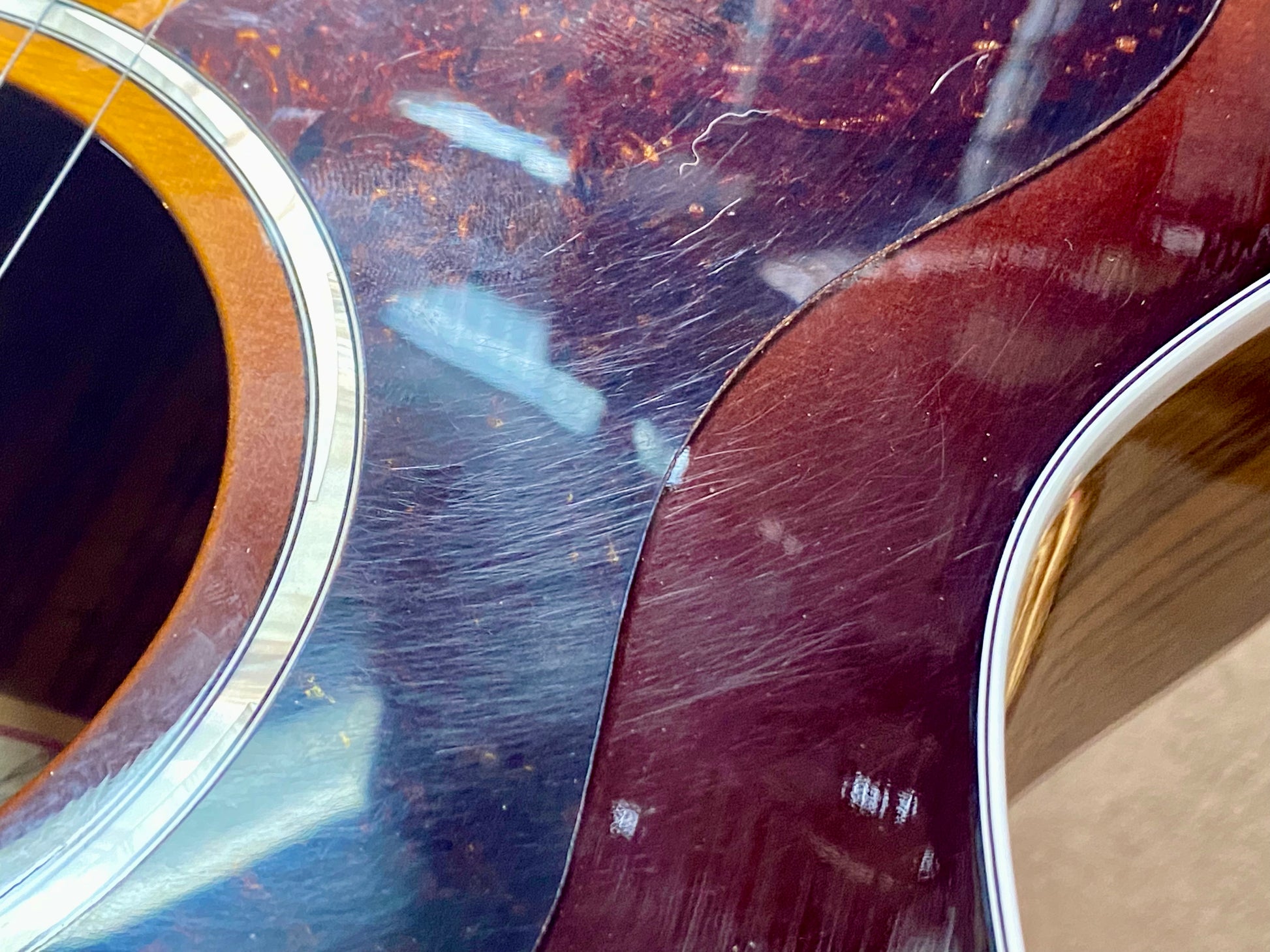 Minimal playwear, pickmarks are present, tiny little nicks on top of the headstock, as pictured. She`s been recently setup by our Taylor warranty authorized tech Edwin. Plays like a Taylor should play and sounds awesome!