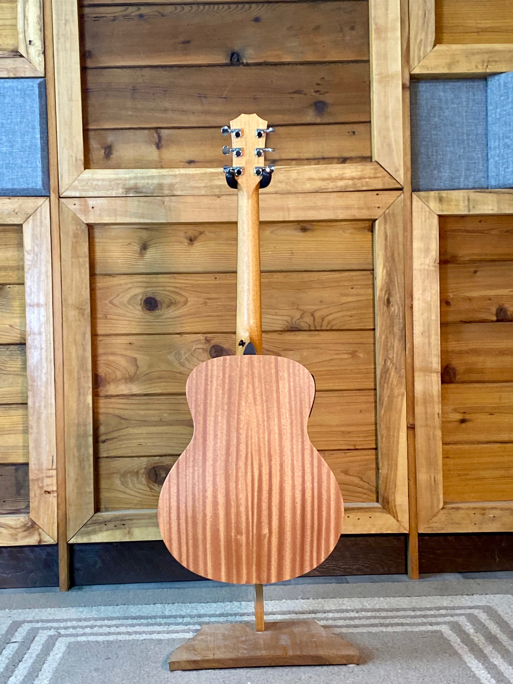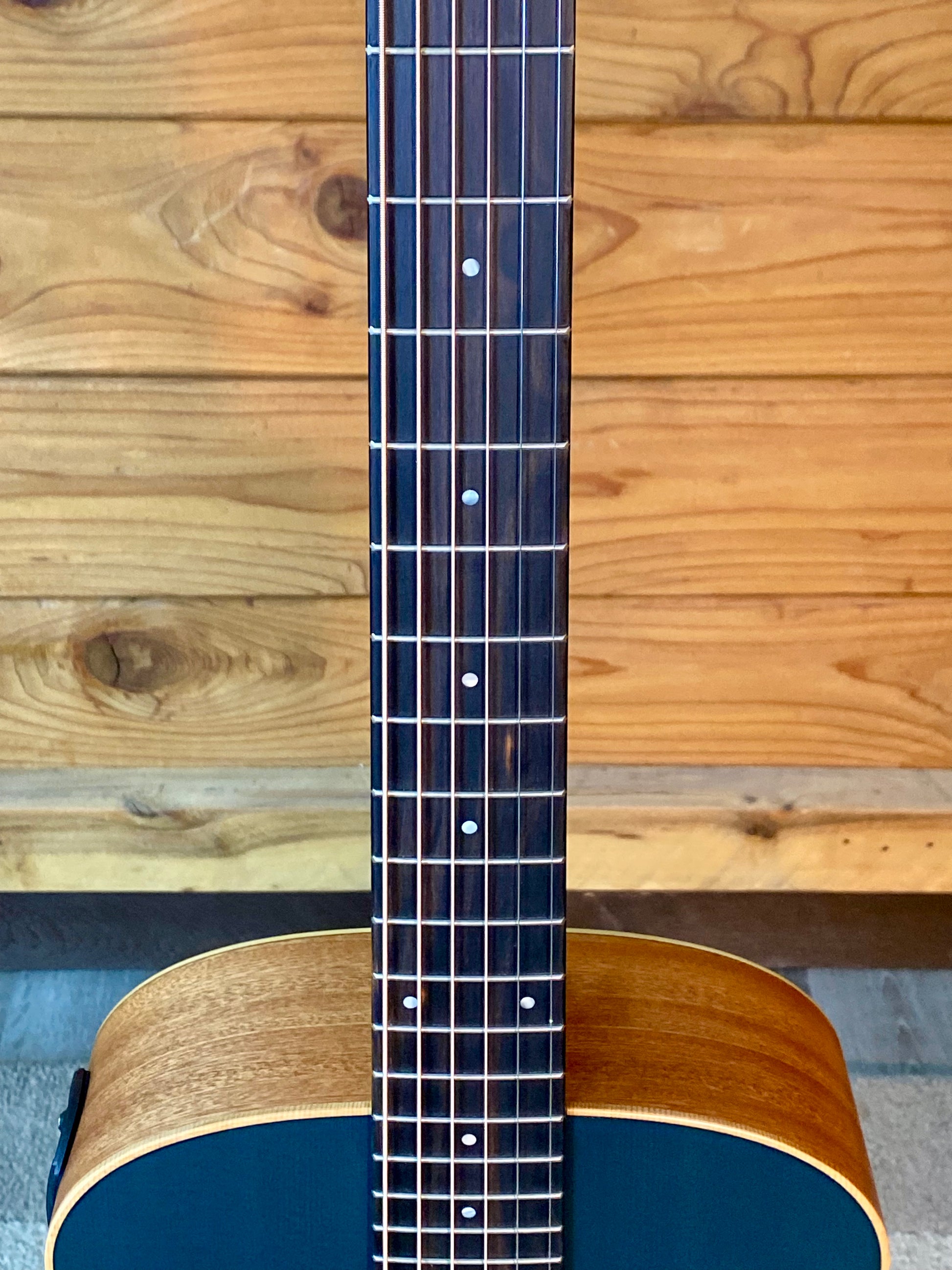 The GS Mini-e Special Edition, Blue Burst showcases a fresh, colorful twist on the traditional burst finish. Its blue burst design—fading from opaque at the edges to translucent at the center of the lower bout—allows the straight grain of its soundboard to be seen and appreciated. Thanks to a solid torrefied Sitka spruce top paired with layered sapele back and sides, this fun-size, travel ready guitar delivers a bold, clear response and balanced tone profile with a mature, played-in character. Together, its slender Taylor neck profile, narrower nut width, shorter scale length and low action provide the comfortable playing experience inherent to the GS Mini’s design. Outfitted with an ES-B pickup that features a built-in digital tuner, the GS Mini-e Blue Burst is geared up to produce clean, authentic amplified acoustic tones at home, in the studio or on stage. A structured gig bag for storage and easy transport rounds out the package.