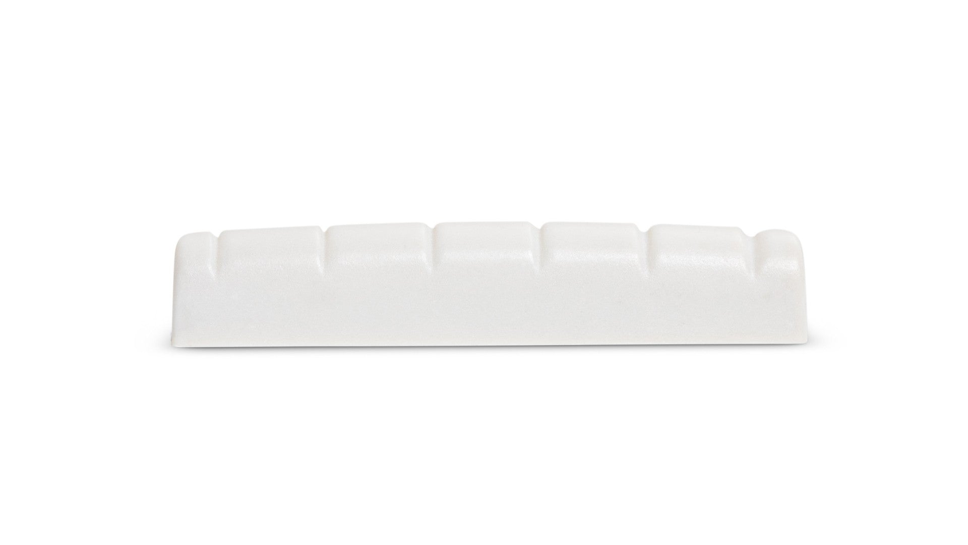 Replacement nut made with TUSQ, synthetic ivory by GraphTech. To determine appropriate nut size, measure width of guitar neck at the nut (where peghead meets the fretboard). Professional installation is required. Nuts must be sized to fit and string slots filed to the proper depth. Blanks are partially shaped. Top edge is rounded over for speedier fitting and installation. several different versions and sizes in stock.