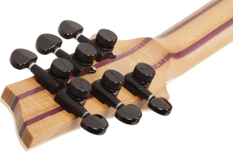An ultra-light Swamp Ash body crowned with a 5A Quilted Maple Top & Walnut center accent pairs with a Master-Grade Roasted Flamed Maple neck & Macassar Ebony fretboard for effortless playability & refined articulation.