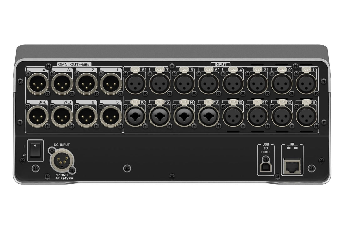 - Local I/O: 16 Mic/Line (12 XLR + 4 XLR/TRS Phones Combo) inputs, and 8 (XLR) outputs